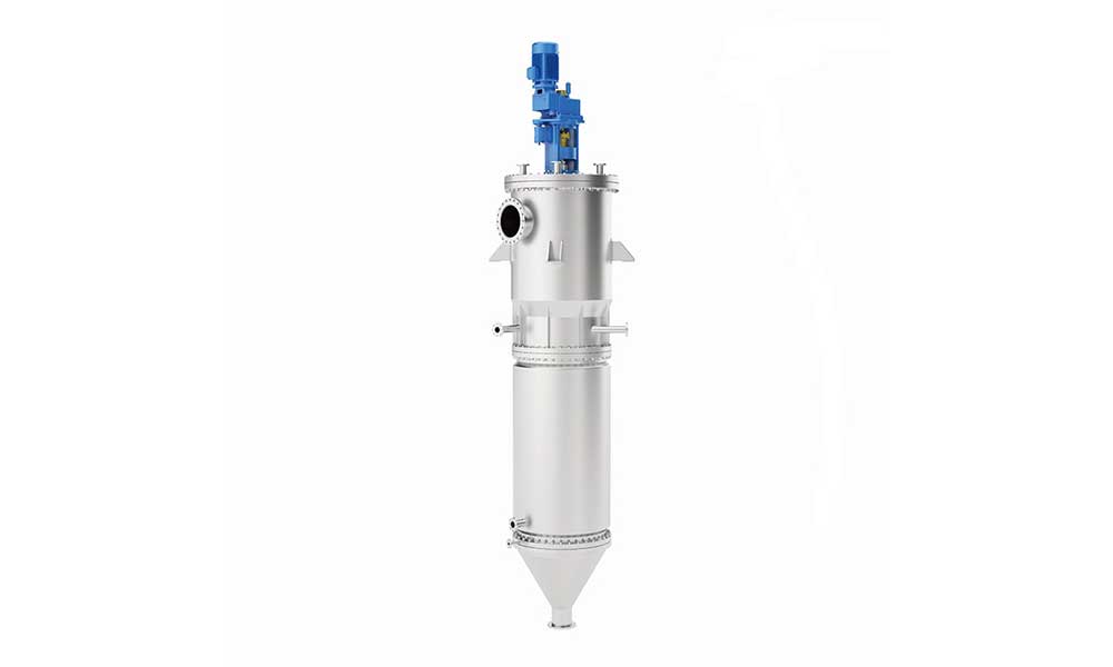 The Thin Film Pilot Evaporator concentrates thermosensitive, viscous, or “dirtying” products (e.g., sugar solutions, enzymes, vitamins, proteins, fruit juices, fermentation broths).